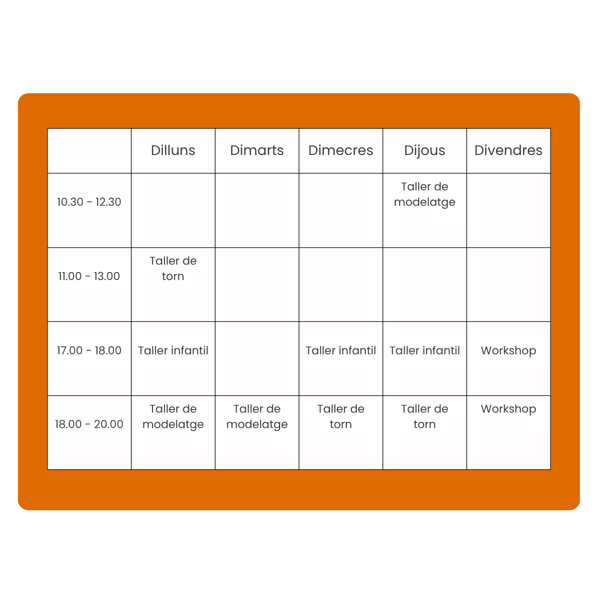 Dilluns, dimecres i dijous de 17:00 a 18:00